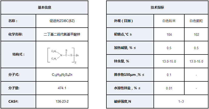 用     途: 天然胶、合成胶及乳胶用超促进剂。在干胶中的活性比 ZDC 更大。含有本品的乳胶可以使用一周而不致有早期硫化现象,是噻唑类促进剂的良好活化剂。